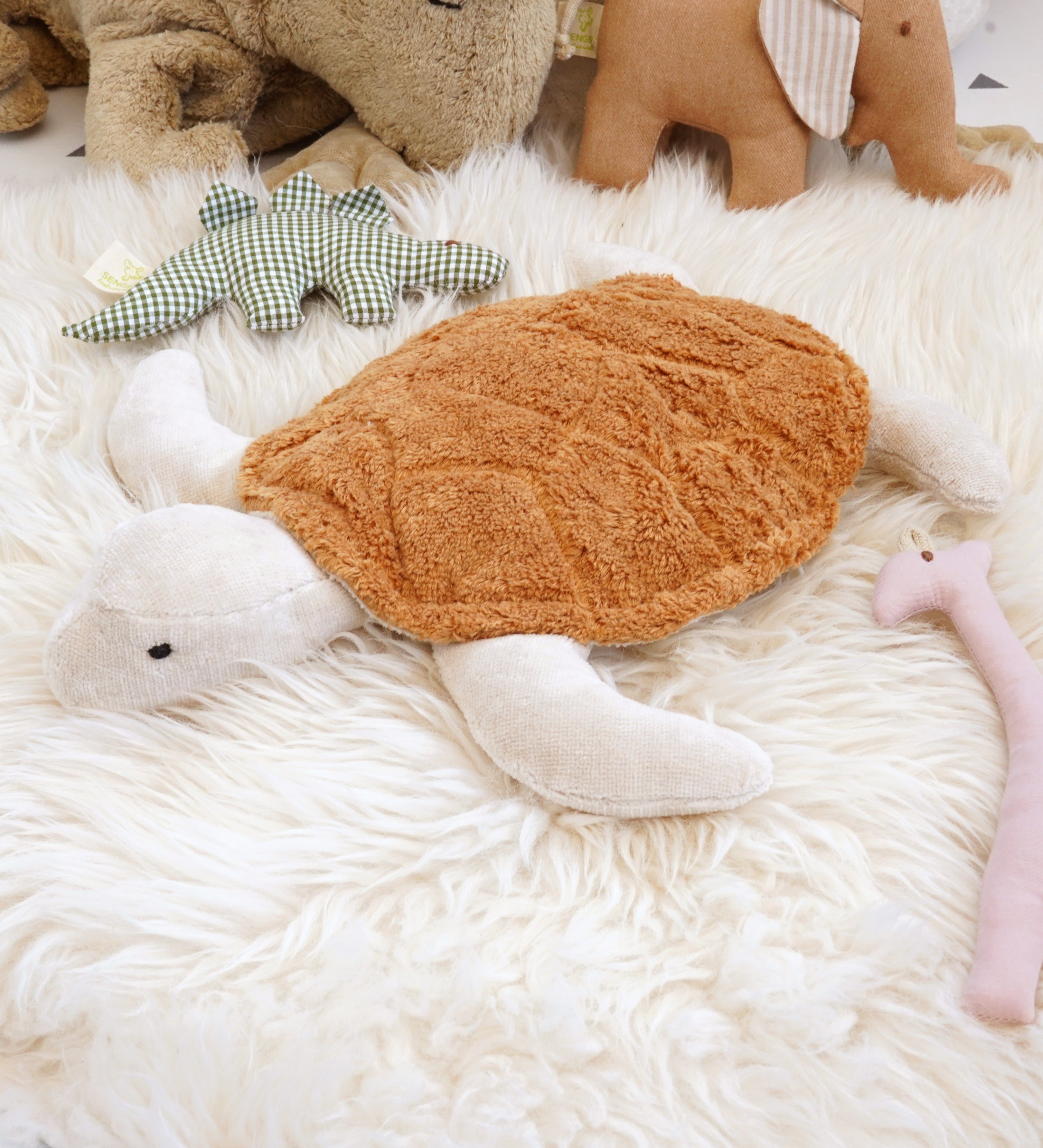 Senger Cuddly Rust Turtle - Large organic heatable soft toy on a cream background.
