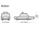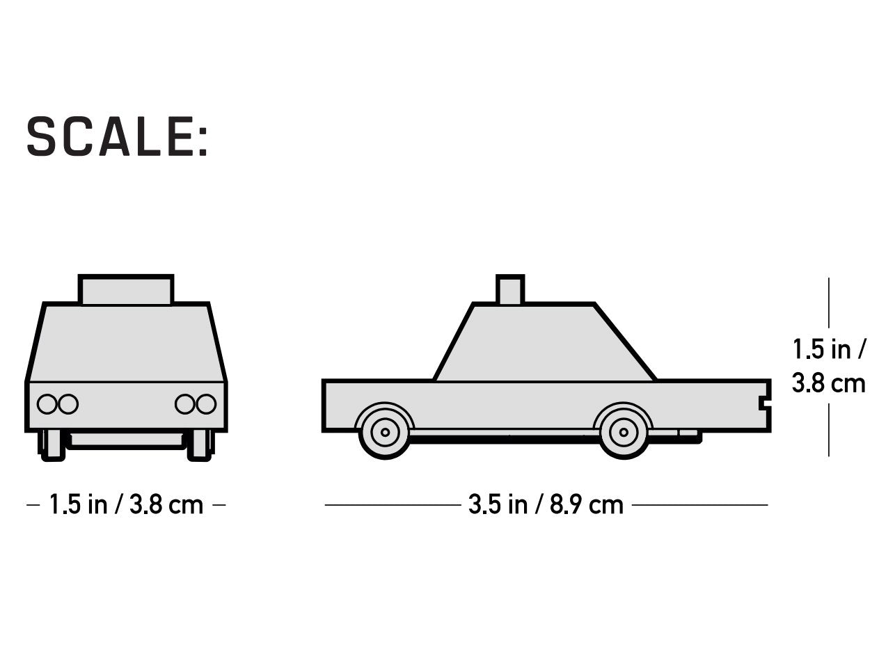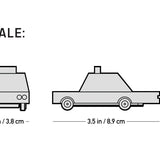 Infographic showing the scale of the Candylab Candycar toys on a white background
