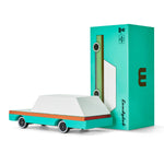 The Candylab Candycar Teal Wagon is an iconic wooden toy family estate car in aqua blue with a white roof, and tan stripe down the side. Beautifully designed, this seriously cool matchbox size wooden toy estate car is the perfect size for toddlers hands and has free rolling wheels for speed and a smooth drive. This stylish toy car is perfect for hitting the highway and heading for the coast. The Candycar range of toy cars have a metal diecast base with a magnet imbedded, allowing it to connect with other Candylab accessories. Children will love this modern contemporary vehicle for imaginative play, while teens and adults will appreciate its fabulous design, admiring it on their desk of shelf. Buckle up and lets hit the road!