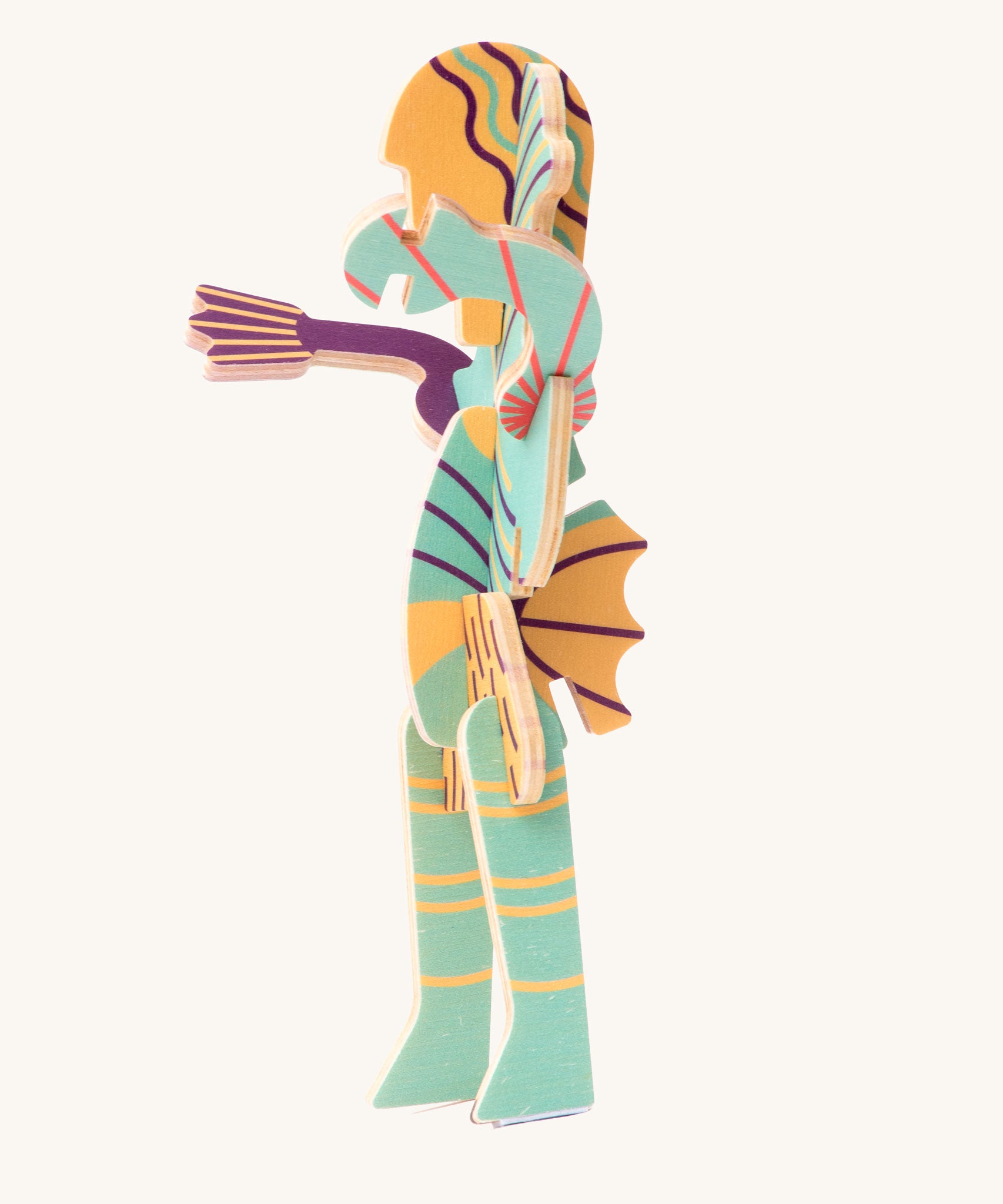 Each part of this puzzle has an abstract geometric design making it interchangeable, and is colourfully decorated with different patterns in pastel shades of yellow, turquoise and purple. Slot the parts together to form the winged sphinx or let your imagination run wild and create a mythical animal of your imagination. This 3D puzzle combines brilliantly with the Tobe Dragon and Pegasus Fantasy Animal Puzzles to create bigger and more complex designs. This 3D puzzle is perfect for exploring problem solving and creative thinking with many possibilities for learning through play, the Tobe Fantasy Animal Puzzles are a great play resource for home educators and early years settings. Made from 6mm plywood and printed with certified non-toxic water based inks, this puzzle can be stored in the robust cardboard box included.