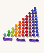 Learn to count to ten and beyond with this set of ten strong cotton strings with 55 beads to thread onto on them: thread one bead onto one string, two beads onto the next, three beads onto the next and so on. This wooden bead toy is a great way for children to learn how to count and do simple sums as physically rolling the beads between a finger and thumb can really help with consolidating learning. The beads are a great size for children and this is a fantastic maths toy for both the classroom and learning at home.
