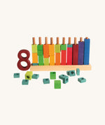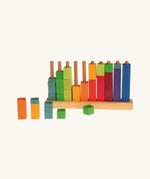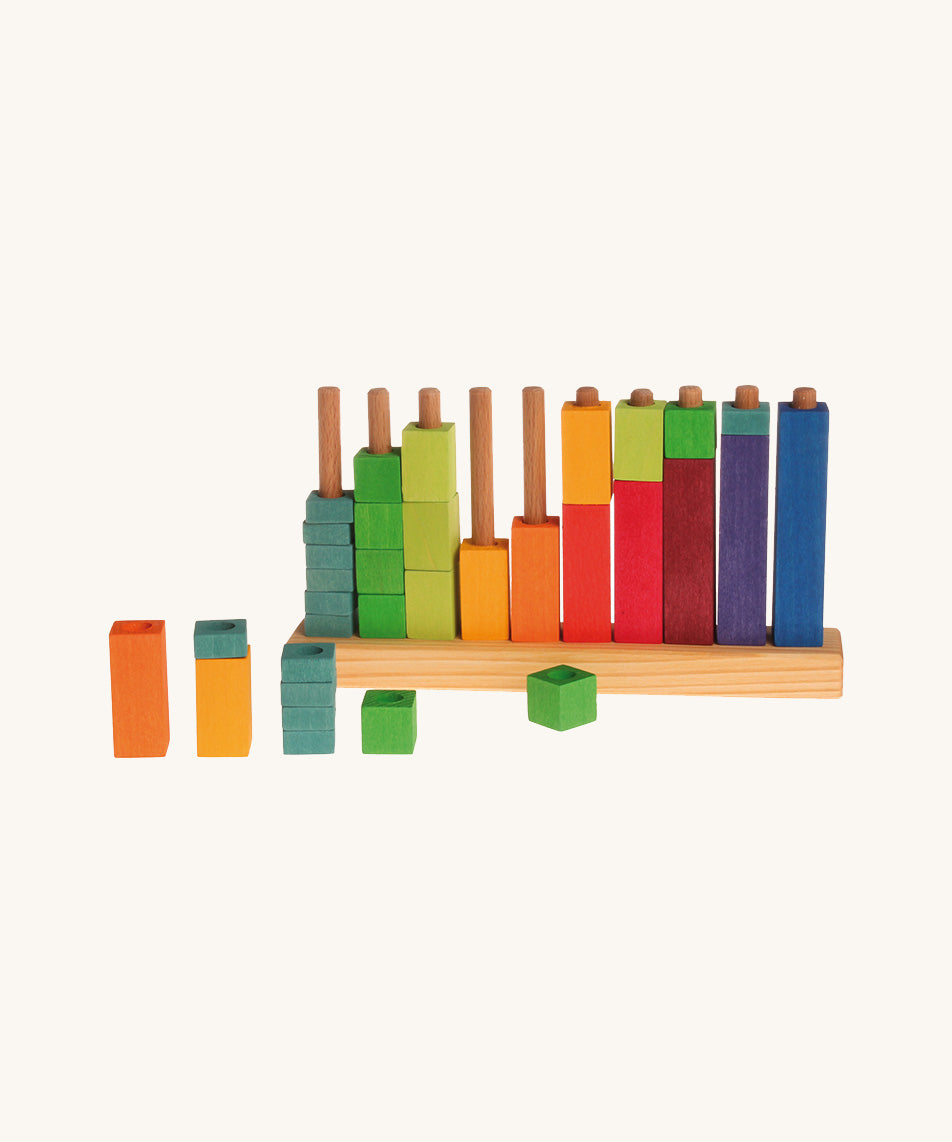The blocks are made with lime wood and have been stained with water-based colour, allowing the natural grain of the wood to shine through. Combine with other mathematical toys from Grimm's such as the Large Stepped Counting Blocks, Numbers Building Set and Maths Friends for a classic Waldorf & Montessori learning experience.