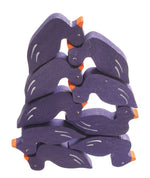 A wooden duck figure from the Grimm's Figures For Counting & Story Telling set in an adult's hand.
