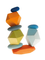A set of 4 Grimm's wooden pebbles in a blue river colourway.