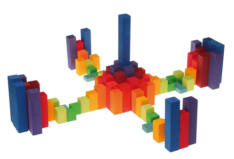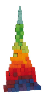 This miniature wooden block set includes 100 small blocks that sit in a wooden frame and can be used for counting and maths games as well as building colourful constructions. It's a great size for taking out and about for learning on the go but makes a great educational toy for the home or classroom too. The 100 blocks sit in a tray in rows of ten, each row taller than the other, giving a stylish stepped effect when on display. They're fantastic for counting and learning about the fundamentals of maths - adding, subtracting, multiplying and dividing. As well as being a great wooden maths toy, this educational toy doubles up as a building block set which can be used on its own or combined with other wooden blocks from Babipur to build a town or create patterns, shapes and landscapes. Children will love to learn, play and build with these beautiful blocks which come in a range of rainbow colours. Steiner educators and home educators will love this multi-purpose educational toy as it can be used for natural play in a myriad of ways.
