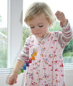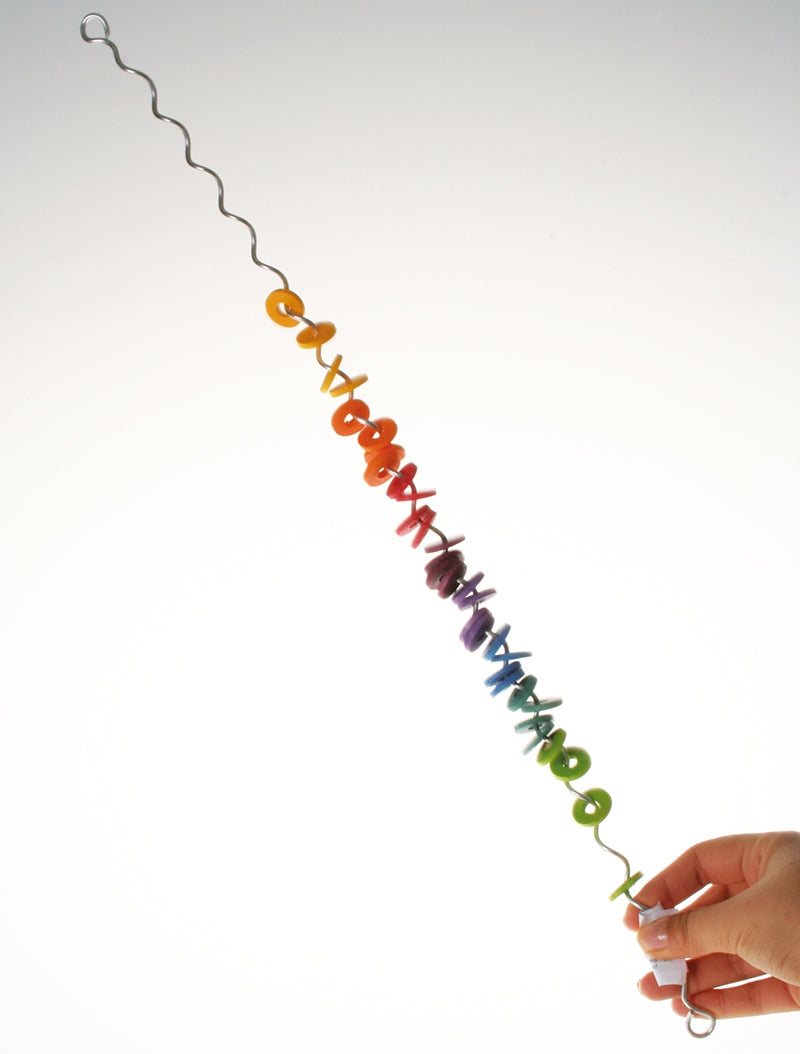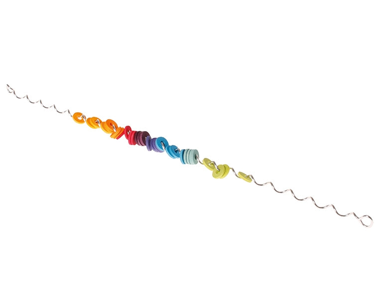 This spinning toy is simple but has a mesmerising effect - hold up the wire and watch the coloured wooden discs spiral their way down, whooshing and whirring as they go. This colourful Grimm's toy is sure to enchant growing children and adults will love it too - we think that this wooden toy is great at relieving stress and looks stunning too.