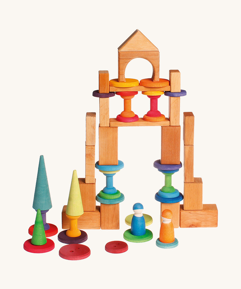 Grimm’s educational wooden toys are made in Europe from alder, lime, beech and maple, all sourced from sustainably managed European forests. They are made in handpicked workshops across Europe and coated with natural colours and oils by the Grimm’s team in Germany. All of the paints and lacquer used to finish your lovingly made Grimm’s toy are harmless and enhance the natural beauty of the wood, allowing the grain to shine through.