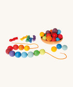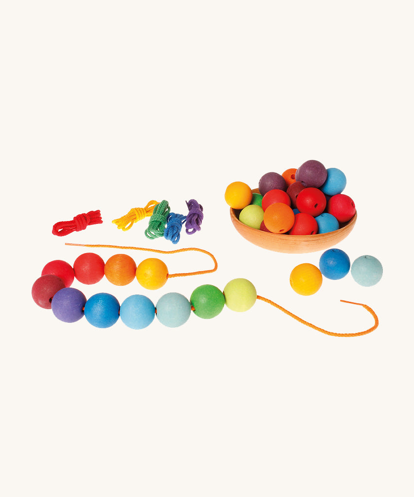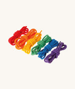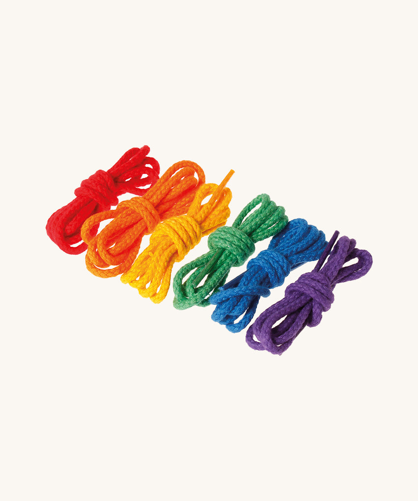 Create necklaces and strings of beautiful wooden beads and bobbins with this set of six cords in rainbow colours and are a perfect fit for items in the Grimm's sorting range. They're also handy for colour sorting games - make a ring with the cord and get your child to fill it with items of the same colour. The colours match up with a huge range of rainbow items in the Grimm's Toys range, making this a great set for combining with other toys for colour sorting activities.