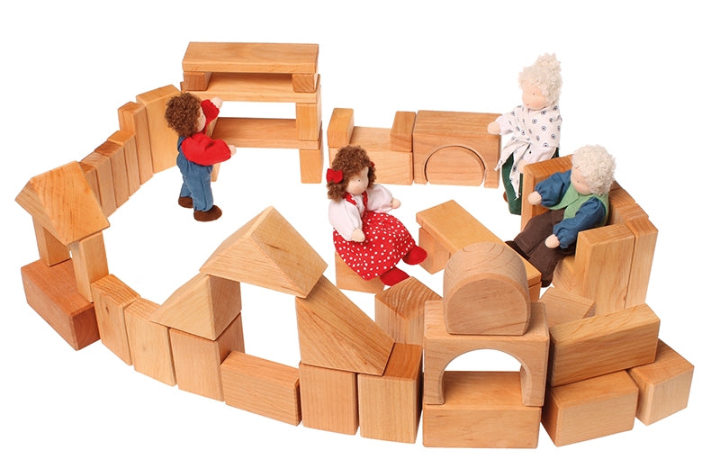 This set of sixty geometric wooden blocks is of an outstanding quality and children will love building with these beautiful blocks which come in a range of shapes and sizes for years to come. Build houses and toppling towers, use to make patterns or as counting aids and for learning the names of different shapes, or even as ingredients in a play kitchen. Steiner educators will love this multi-purpose educational toy as it can be used for natural play in a myriad of ways.