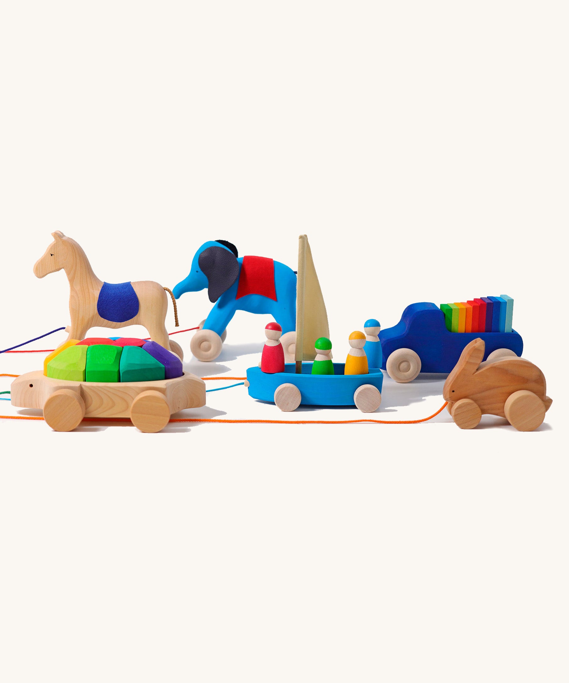 Featuring toys to shake, build or pull along, Babi Pur’s range of Grimm’s Waldorf-inspired toys has something for every child to fall in love with. The quality of these toys is superb and their appeal is timeless – we’re sure that they will be treasured not only by your children but by your grandchildren too. Grimm’s Toys are inspired by the Waldorf Steiner education movement which advocates learning through thoughtful, creative play at an unhurried pace. Toys play an important part of the learning experience and Waldorf toys are made with natural materials, beautiful and simplistic – the lack of details allow children to fill in the blanks with their imaginations. They can be used in multiple ways in creative play scenarios, rather than being prescriptive. Waldorf toys are wonderfully tactile and call on children to play with them.