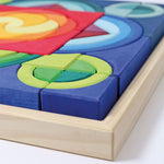The Grimm’s Arcs in Squares Building Set is a fantastic 81 piece set of colourful wooden blocks in a range of arcs and geometric shapes with endless building possibilities, which form a stunning symmetrical puzzle within the wooden play base. Open up a world of open ended building play with this exciting new wooden building block set from Grimm’s.