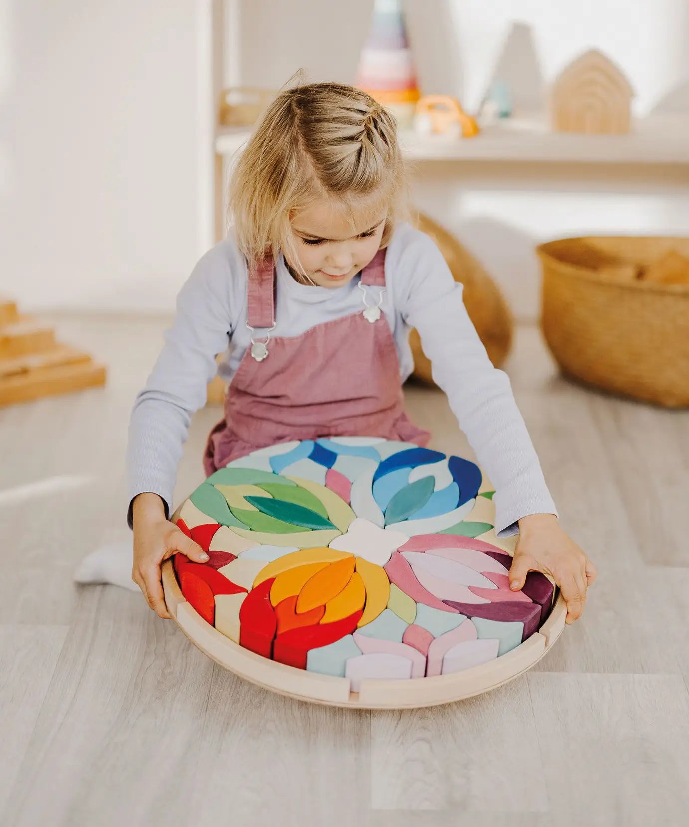 Grimm's Lara Mandala Building Set being picked up by a child.