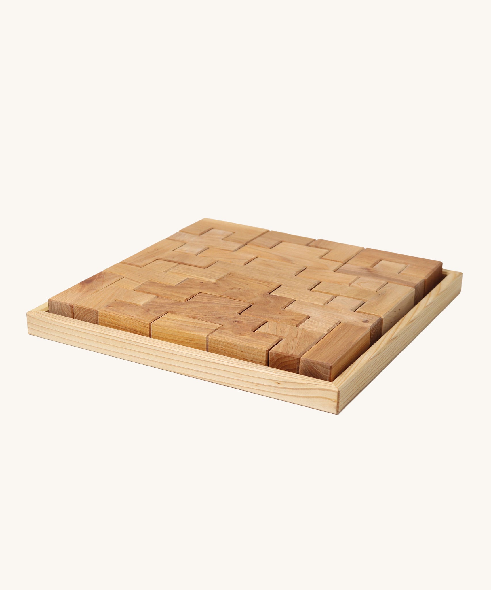 • 19 wooden stepped building blocks in a wooden frame