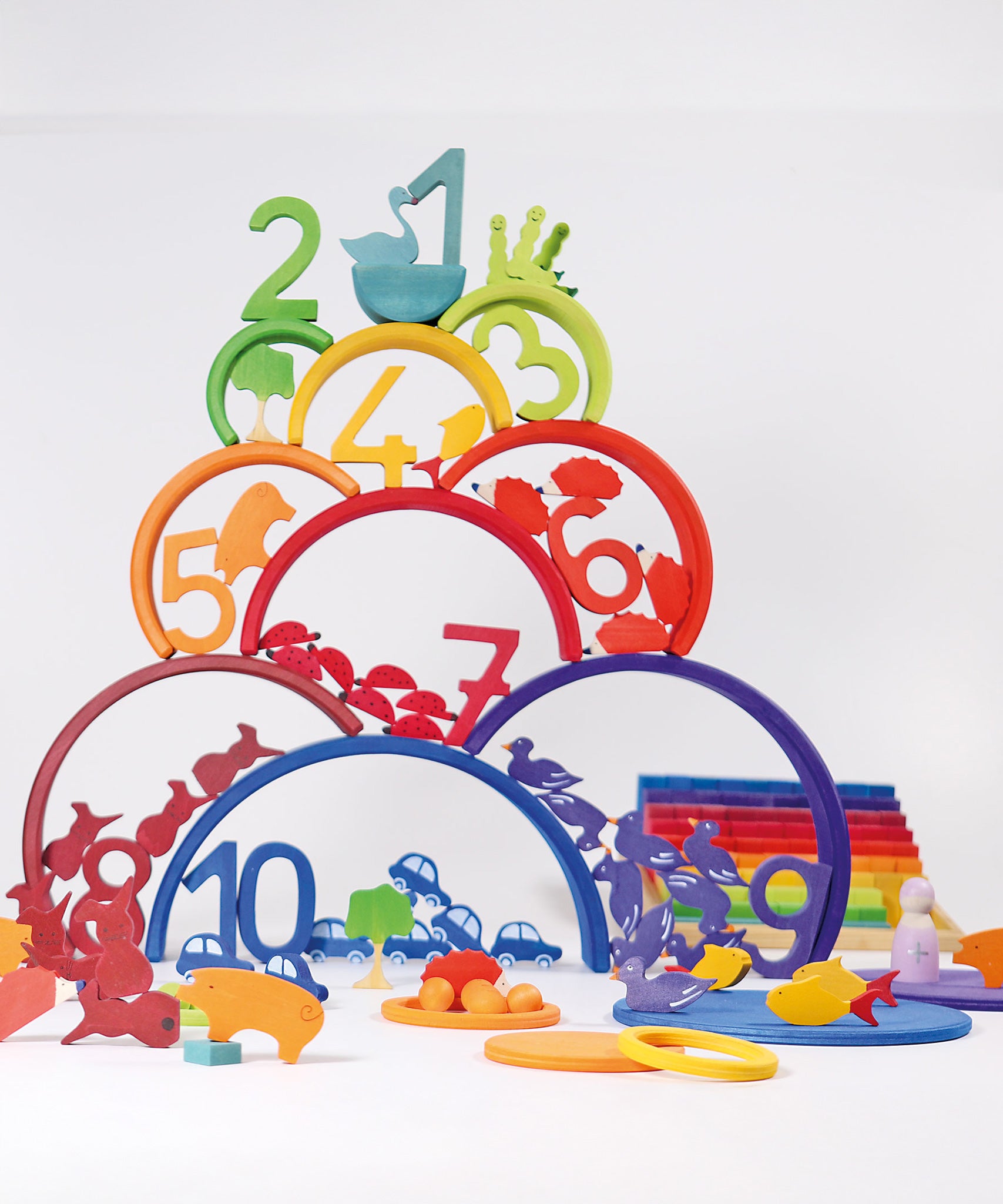 Grimm's Counting Rainbow Tunnel 10 Piece on a plain background.
