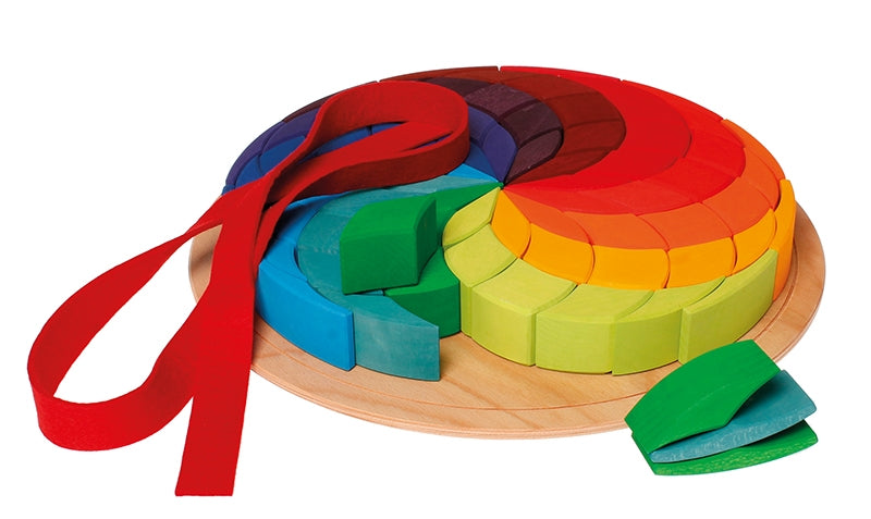 This super-sized wooden spiral pattern is a fantastic wooden puzzle with 72 wooden blocks. This chunky wooden puzzle can be used to create stunning patterns and unlimited pictures from the multi-coloured shapes. The puzzle comes in the form of a rainbow spiral but imaginative children won't feel limited to this - this wooden puzzle will inspire creative juices to get flowing.