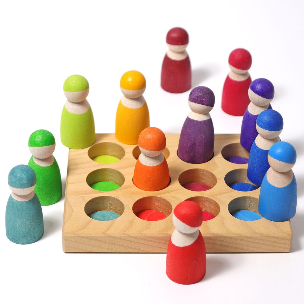 Slotting small toys into each hole will hone toddlers' motor skills and develop communication skills as they talk about which colour goes where. This beautifully crafted wooden tray has a rich wooden grain and is smooth to the touch. Creative tots can use this for multiple sorting activities, and maths and counting games too. This wooden sorting board educational toy perfectly complements a range of Grimm's Toys and will be a hit with green parents and Montessori educators.