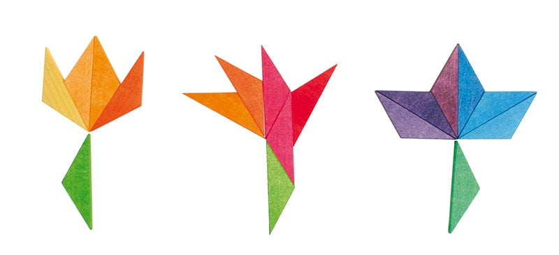 The pieces come in a wooden frame that can be used to build inside, making this a great toy for taking out and about. Feel free to combine this set with other Grimm's building blocks for unlimited possibilities.This Grimm's wooden puzzle will develop fine motor skills with each play.