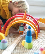 Grimm's toys are handmade in Germany and Europe. Sanded, sawn and dipped by hand in non-toxic water based stains that are safe for children and the environment. Durable, long lasting toys that are easily repaired if needed keeping toys in play for longer. Grimm’s toys are made from sustainable wood sources, an infinitely renewable material that can be naturally returned to the earth. Wood pellets from their workshops are used for heating and electricity as well as solar panels. Grimm’s deliberately want to create a counterpoint to the digital media world for our children.