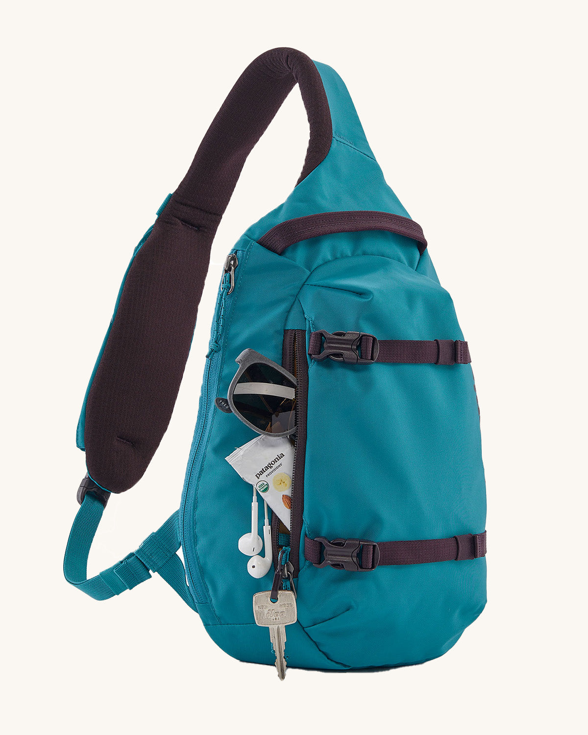 The Patagonia Atom 8L Sling has an ergonomic design, combining the comfort of a back and the convenience of a shoulder bag. The zippered main pocket will hold lunchbox and drinks with a dedicated padded tablet sleeve, and a side pocket with a key clip to keep important items secure and easy to access. There’s a central front zip pocket for easy access to items like tickets and sunglasses. This bag has a padded, breathable mesh adjustable shoulder/chest strap and back panel, wicking away moisture for a comfortable carry, all day long. A convenient stretch mesh pocket on the shoulder/chest strap will hold your phone for easy access.