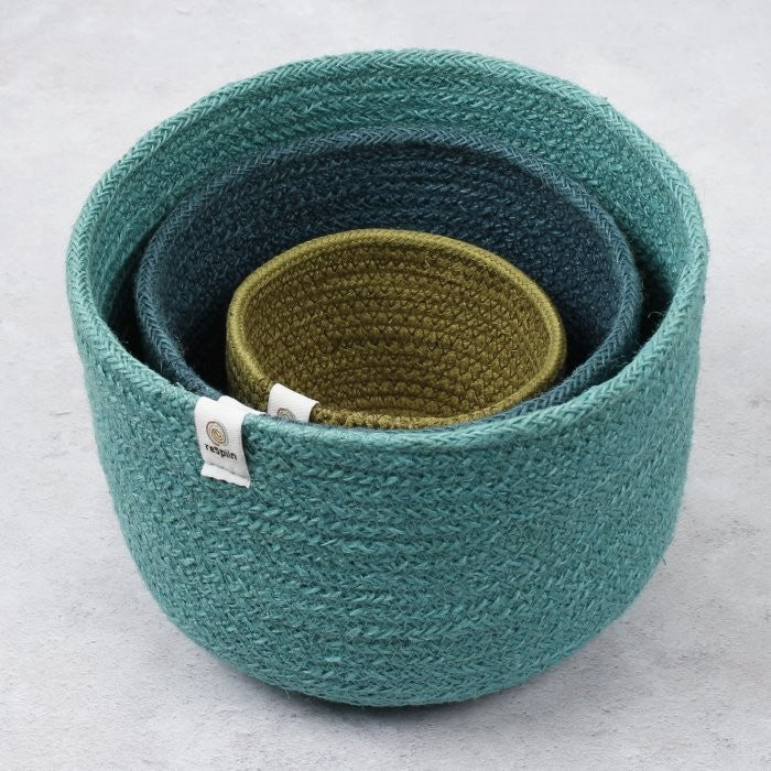 ReSpiin Jute Tall Basket Set of 3 - Ocean