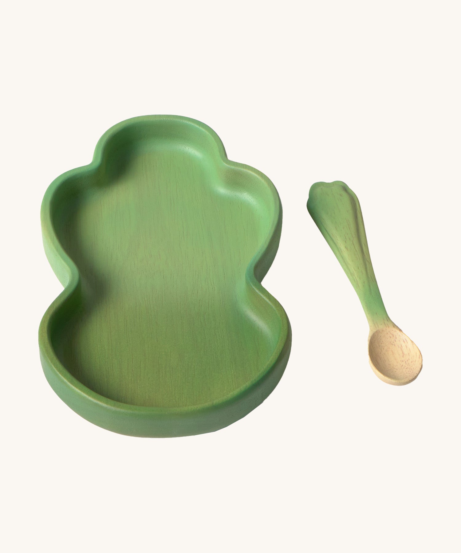 Oli & Carol Wooden Baby Plate and Spoon Set - Kendall the Kale