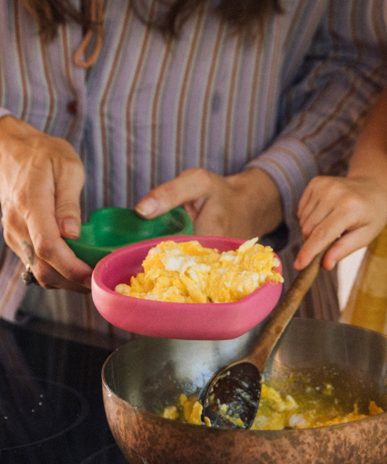 • The Spoon: With its flat, easy-grip handle and smooth, rounded edges, this spoon is ideal for little hands learning to self-feed, while also comfortable for parents to use when feeding babies. Each spoon has a gently deepened bowl with a slim width that makes it easier to scoop and serve first purees or toddler snacks.