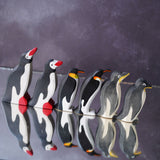 Bumbu and Ostheimer penguin figures lined up with a dark coloured background behind