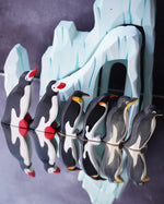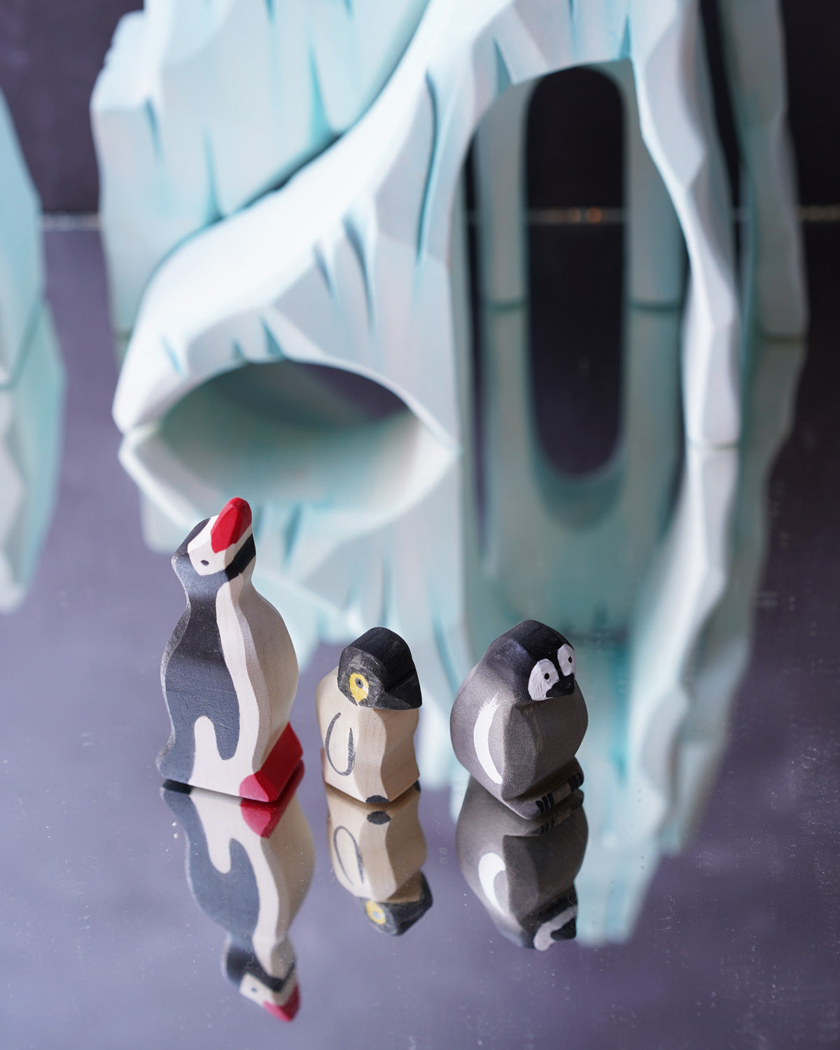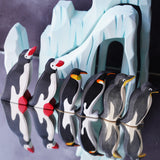 Bumbu and Ostheimer penguin figures lined up with the Bumbu icy cliffs behind