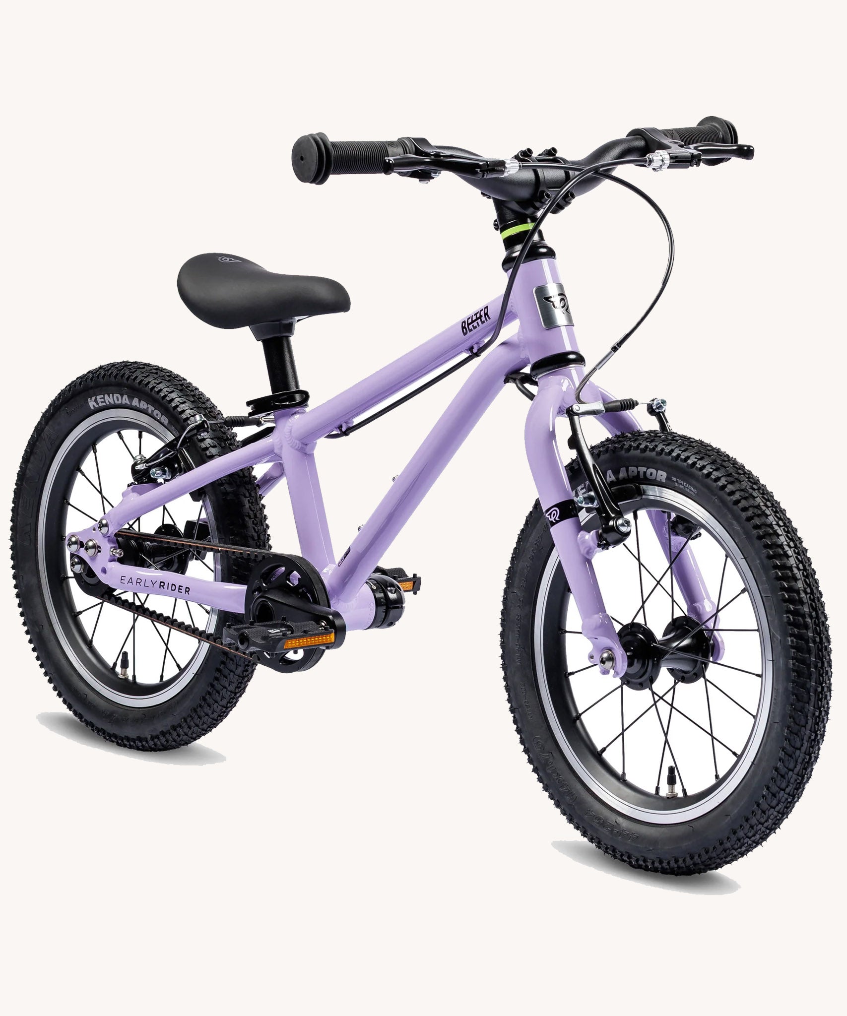 Is the Early Rider Belter 14" right for my child? For most children the Belter 14 offers the very best, confidence inspiring first pedal bike with its dialled in geometry, super lightweight frame and high quality parts throughout. The tyres and brakes are designed to handle pavements, parks, gravel paths, mud and jumping off curbs. If you're looking to take on mountain bike trails and conditions then look towards the Early Rider Seeker 14" which is the best first Mountain Bike on the market.