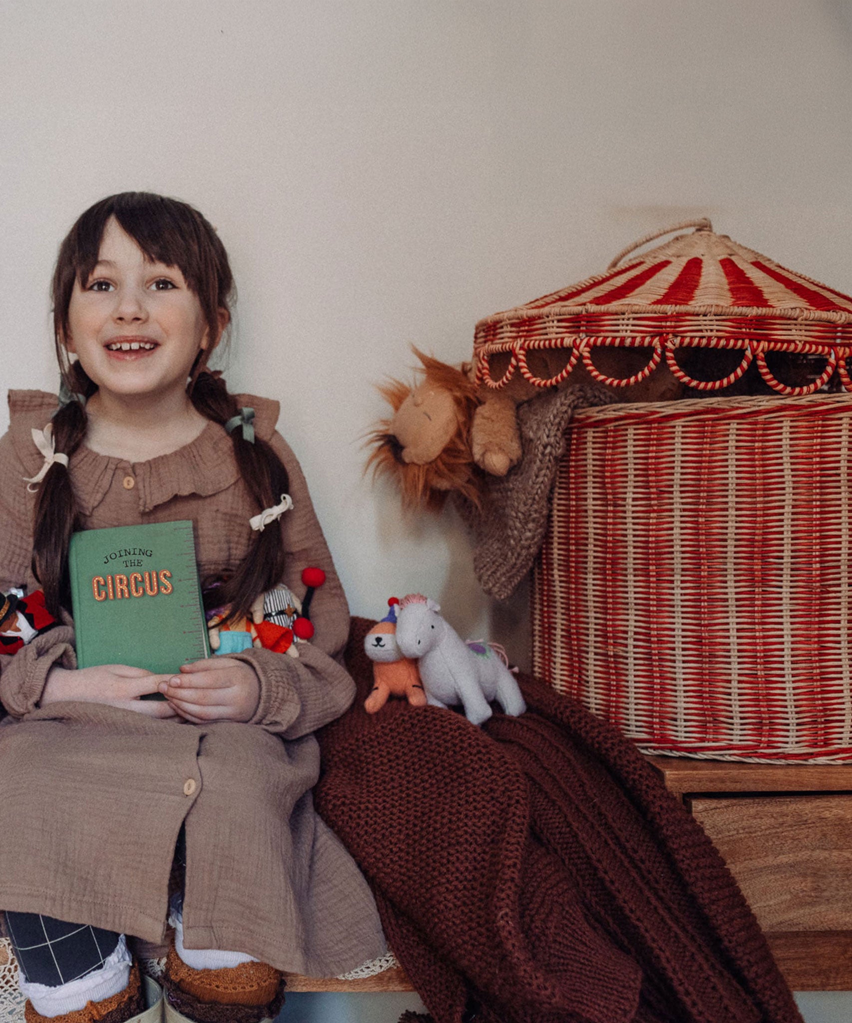 Handwoven from natural rattan with a sturdy steel frame, this dual-colour basket features a removable lid top, inviting little ones to open, peek inside, and create their very own circus adventures. Whether it’s a home for wooden animals, teddy bears, or other treasures, it’s a world of play waiting to happen. When the show is over, everything tidies away neatly inside.