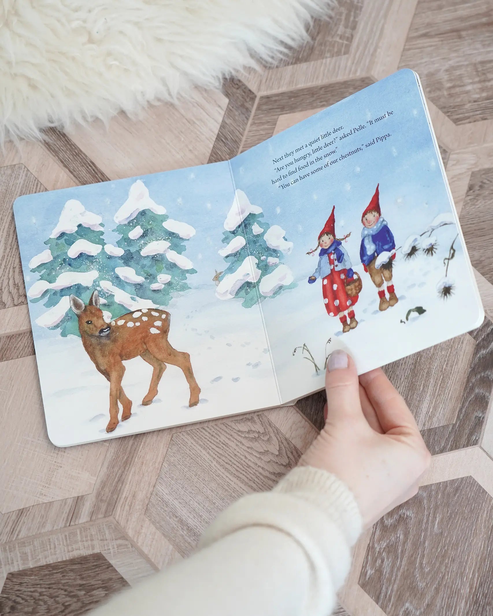 Join tiny gnome friends Pippa and Pelle as they wake to find their woodland home covered in a thick blanket of snow. In this beautifully illustrated children's board book, the pair head outside to enjoy a day of winter fun. They go sledging and skiing through the snowy landscape, build a snowman, and meet their animal friends along the way.