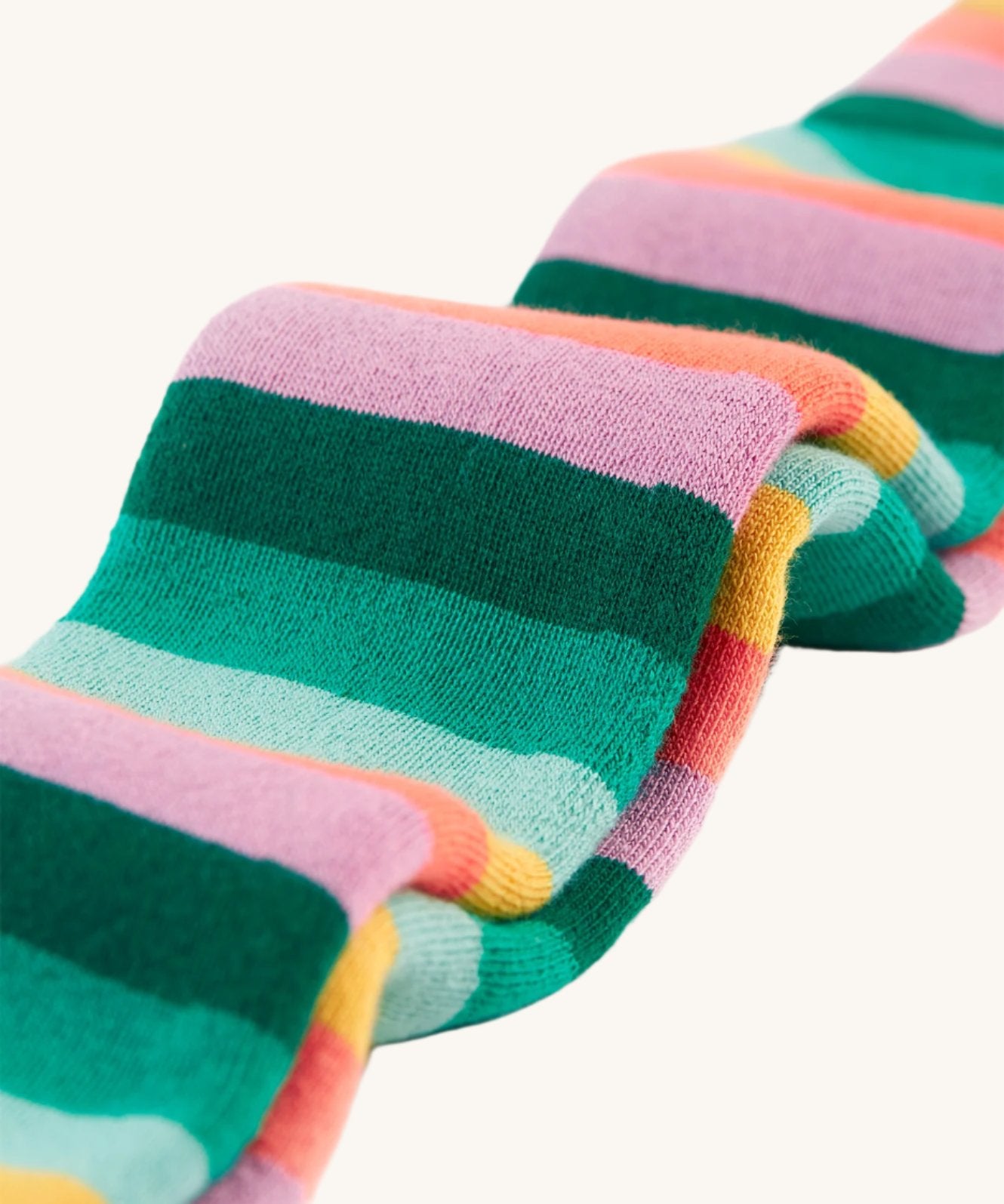 Frugi Children's Organic Cotton Toasty Tights - Cantaloupe Multi Stipe