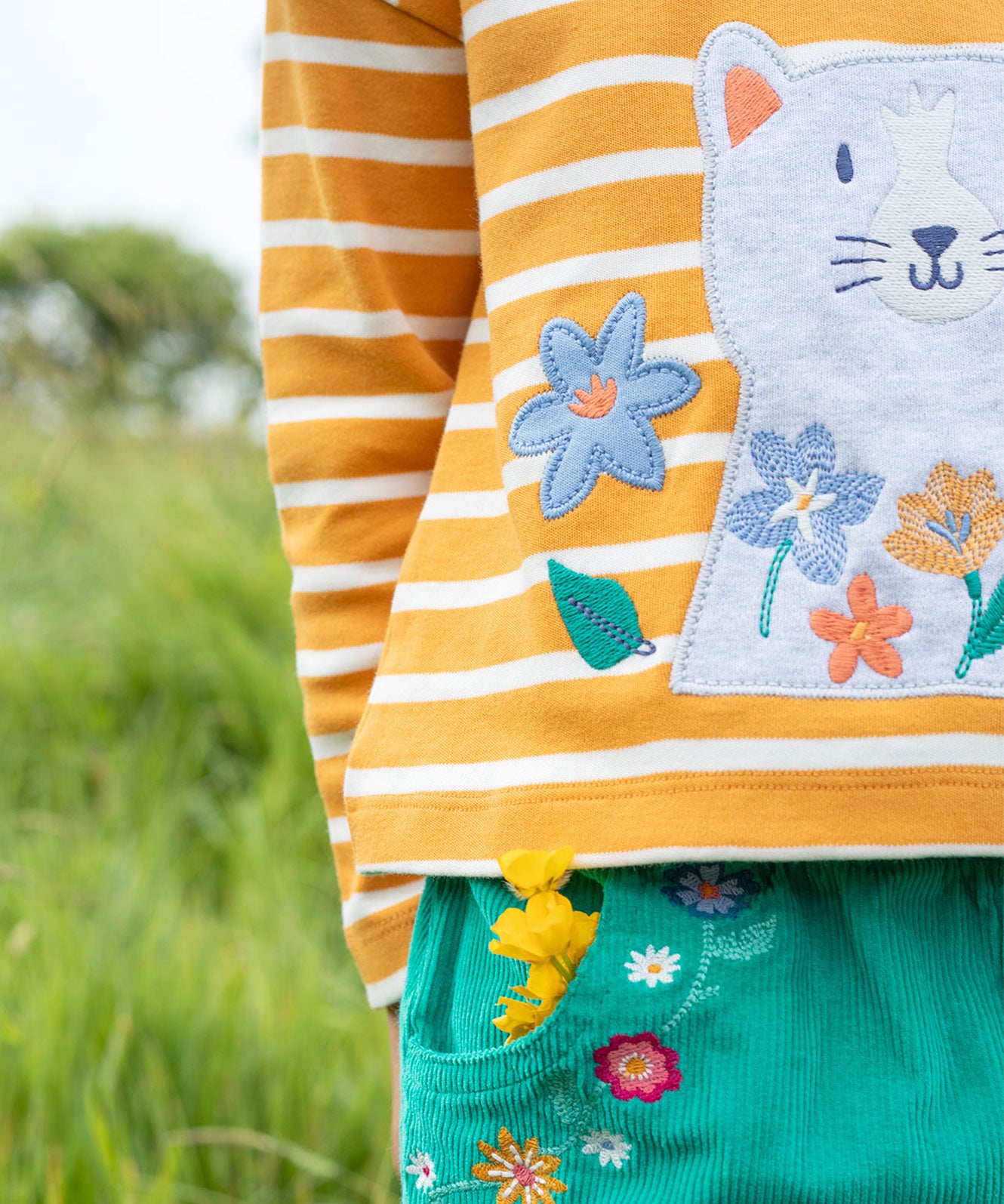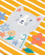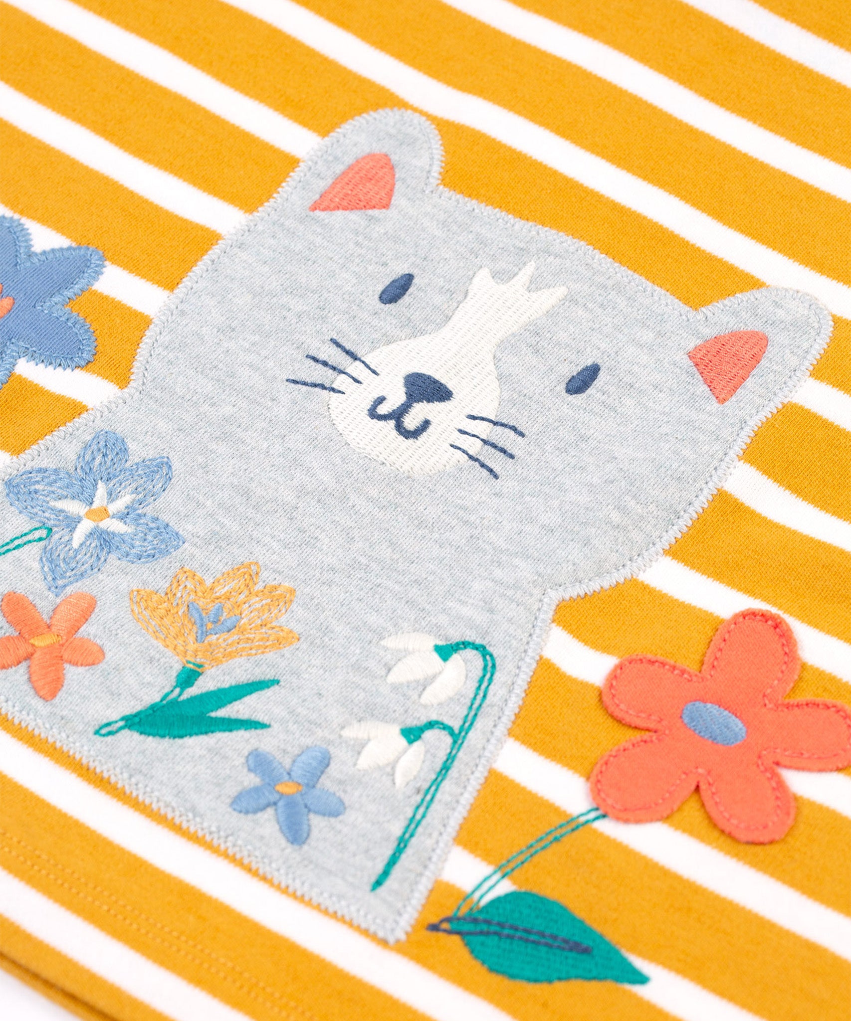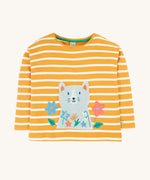 Frugi Tori Applique Top - Gold Breton Stripe/Cat