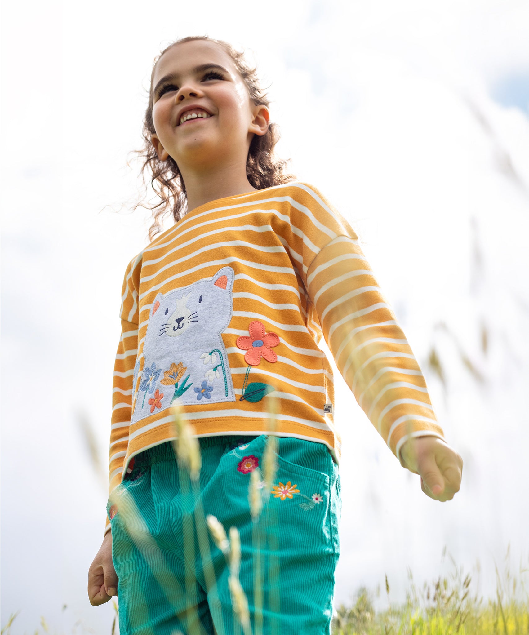 True pioneers of the ethical and organic children’s clothing industry, Frugi was started by Lucy and Kurt in 2004 in Cornwall under the name Cut4Cloth. They developed a range of colourful, playful organic cotton kids clothes that would accommodate the fluffy cloth nappies of the time. Frugi has a mission to transform the children’s clothing industry from throw-away convenience culture to one of greater sustainability and a love for people and the planet.