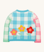 Frugi multicoloured check cardigan daisy design back detail