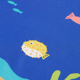 Frugi orange and blue rash vest deep sea diver print and hem detail