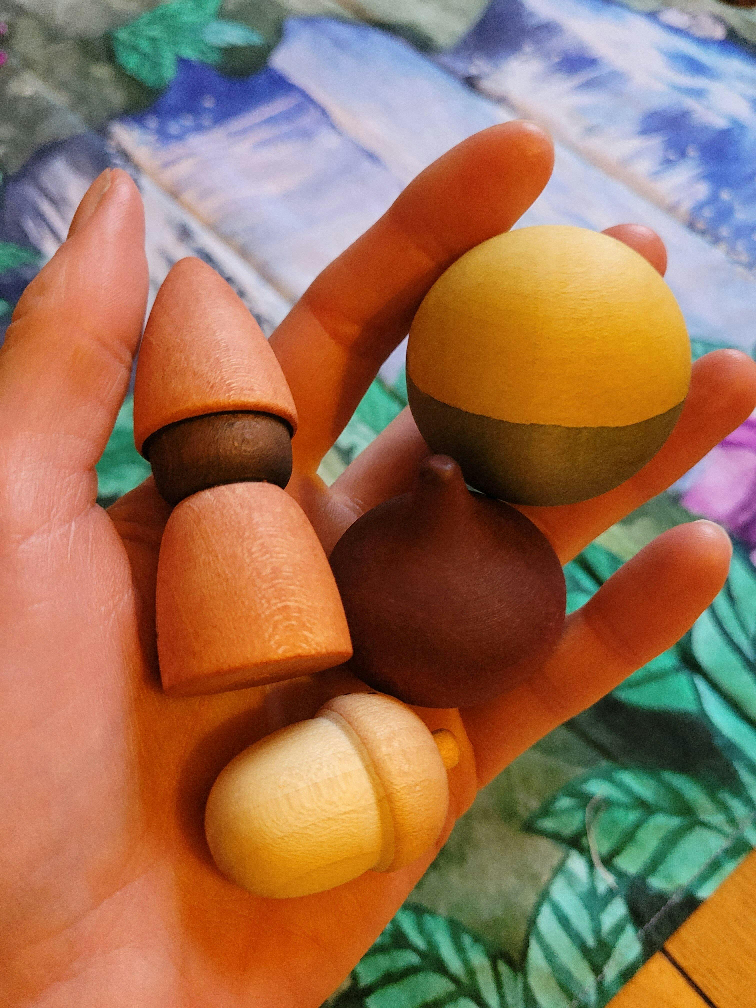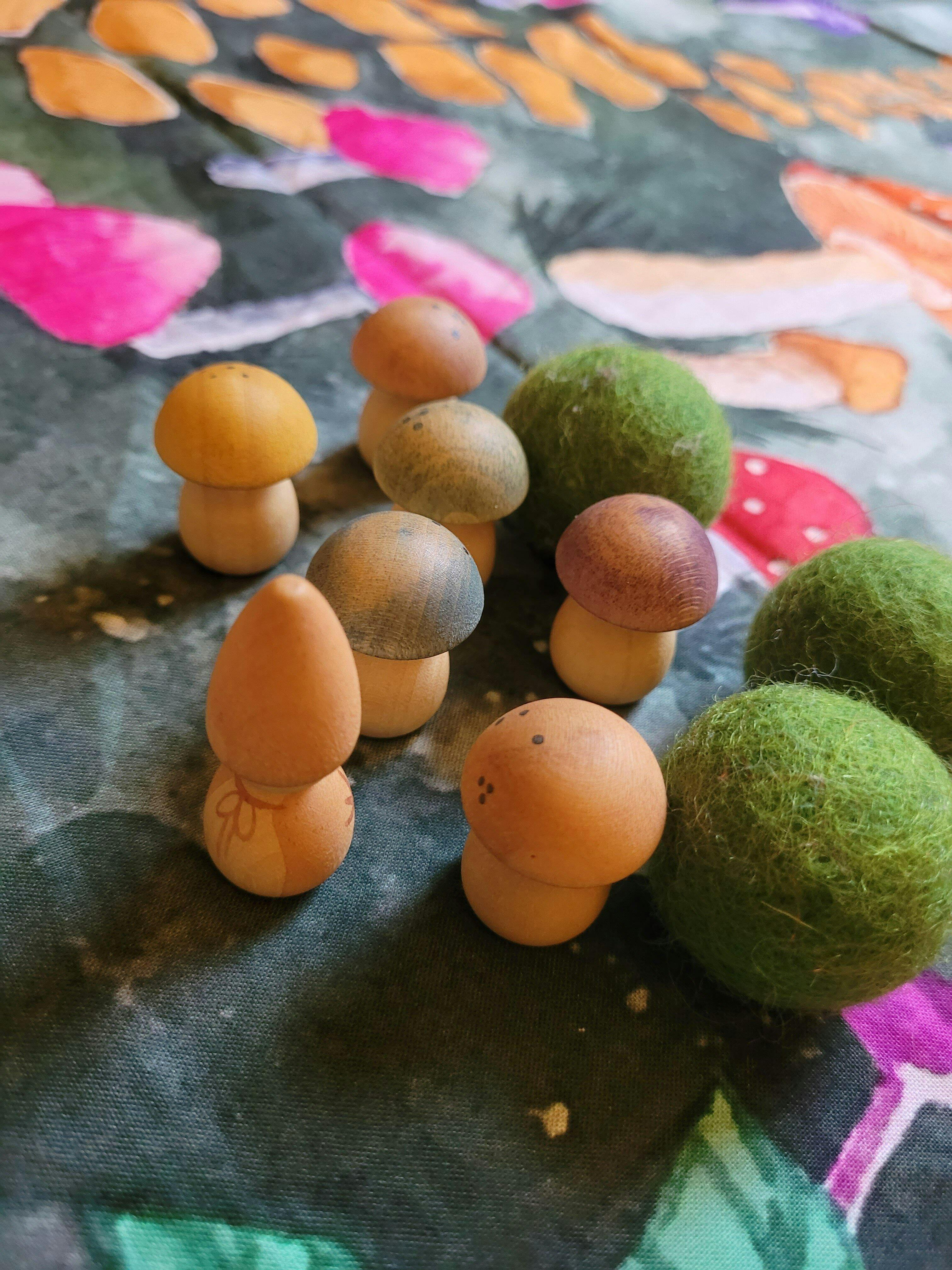 Grapat Moonlight Tale Play Set. Various handmade and hand painted wooden figures of mushrooms