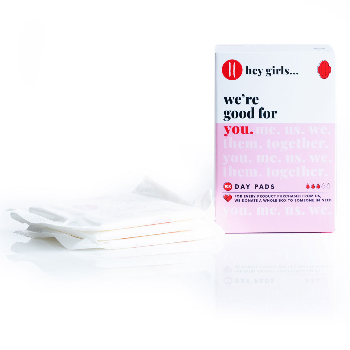 Hey Girls Bamboo Day Pads - 10 Pack in box pictured on a plain white background
