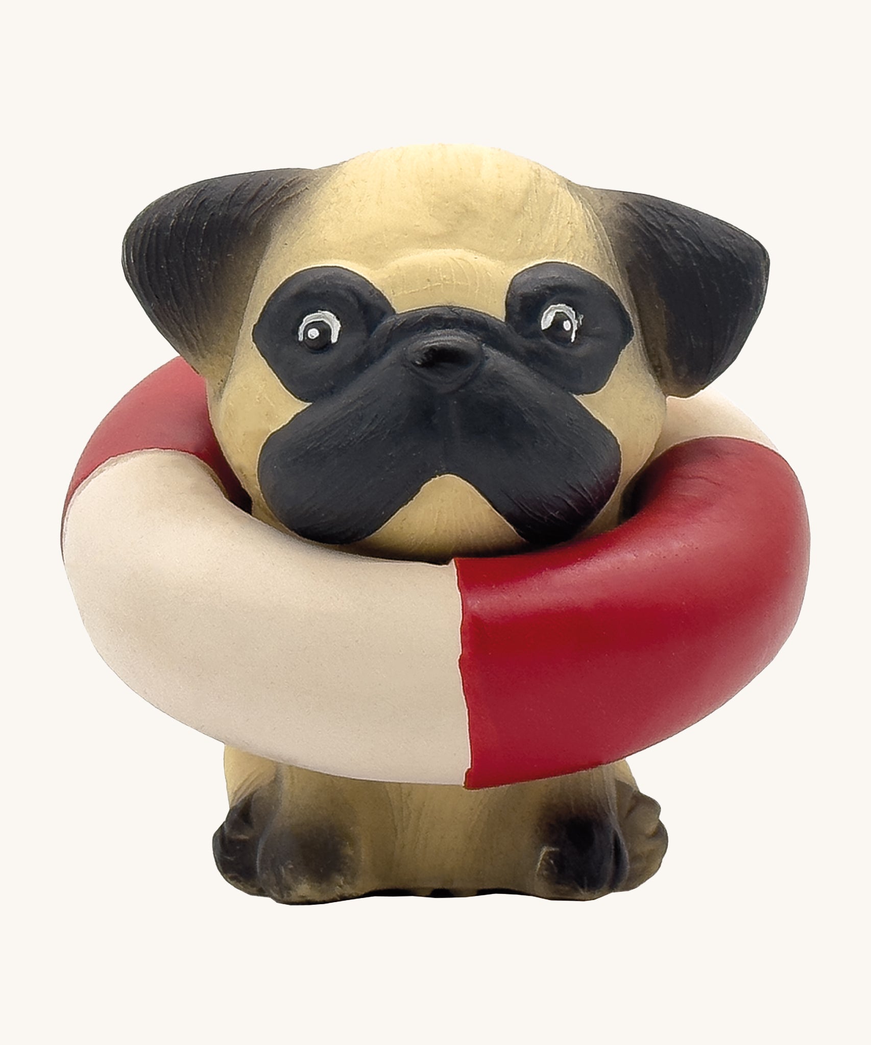 Charlie the Havea Bath Buddy is a cute pug dog wearing a removable lifebuoy ring, a fun and interactive toy to help teach young children about water safety. Lift the lifebuoy ring off over your Bath Buddy's head. Each part is made in a one-piece design and hermetically sealed, so there are no holes or cracks for mould to develop inside. Charlie is handpainted with plant-based pigments and BPA, PVC, Phthalate, and Nitrosamine free making this toy totally safe for little ones to put in their mouth. When playtime finally finishes, this little dog is fully compostable making it a brilliant plastic-free and planet-friendly toy.
