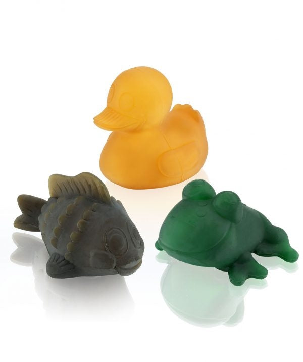This Hevea Fred The Frog is a raw rubber bath toy, safely dyed green with food grade natural pigments. This natural rubber bath toy has no holes to prevent mould growth. Hygienic and safe for children and babies to play with at bathtime, and it's a safe teething toy too. Babies love to grab, feel and chew on these cute rubber frogs while older tots love to play with them in the tub. Designed for the tiniest of hands to squish and squeeze.