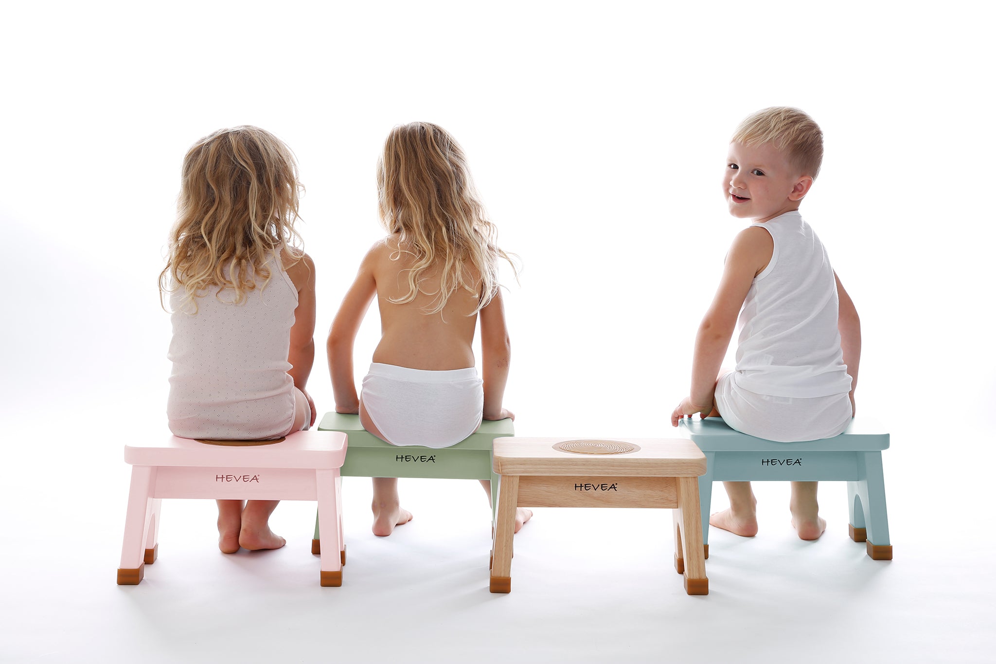 • A durable and sustainable solid rubberwood toddler step stool, made from upcycled wood from fallen Hevea trees.