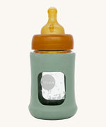 Safe, practical and 100% plastic-free feeding bottles for newborns and babies with an easy on and off natural rubber sleeve for extra protection from drops and heat.