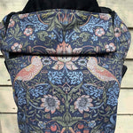 Integra flower garden baby carrier available at a Babipur a dark coloured carrier with a vintage inspired flower and butterfly design. Features a small hood for head protection.