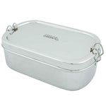 Store your leftovers in this large family sized stainless steel folded smooth edged lunchbox. With clip closure either side, this lunchbox is perfect for sandwiches, pastries, salads or leftovers for work, home, picnics or camping trips! The 1700ml capacity means you can take enough food with you for the whole family in one neat container. Alternatively, it can be used for storing dry good such as pasta, rice or noodles. Ethically made in India from stainless steel, this plastic free container means flavours from previous meals aren't retained and it doesn't impart a taste to your food either.