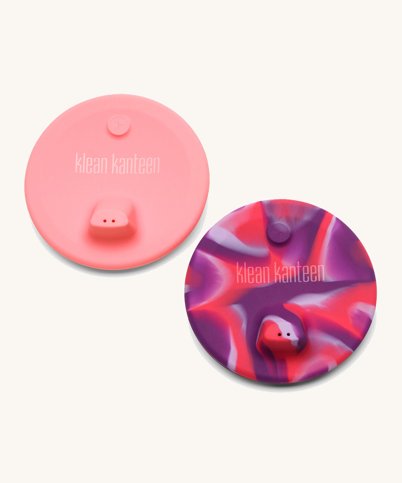 A pack of 2 silicone lids for the Klean Kanteen 10oz Kid Cup, splash and spill proof free flow lids for babies and toddlers with an ergonomically designed soft spout that's gentle on developing mouths.