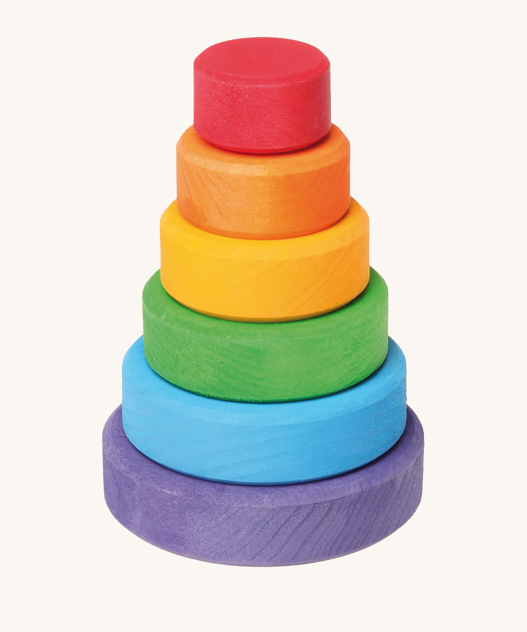 Grimm’s educational wooden toys are made in Europe from alder, lime, beech and maple, all sourced from sustainably managed European forests. They are made in handpicked workshops across Europe and coated with natural colours and oils by the Grimm’s team in Germany. All of the paints and lacquer used to finish your lovingly made Grimm’s toy are harmless and enhance the natural beauty of the wood, allowing the grain to shine through.