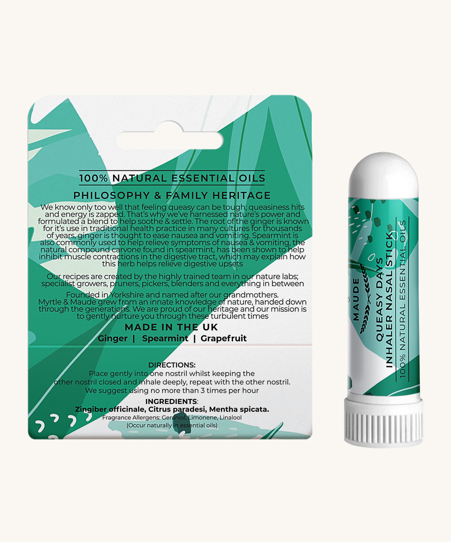 Help combat Morning Sickness and Travel Sickness with the Myrtle & Maude Nausea Aromatherapy Nasal Stick with 100% natural essential oils. Harnessing the power of pure essential oils this blend is formulated to quickly target nausea symptoms, in a convenient nasal inhaler stick.