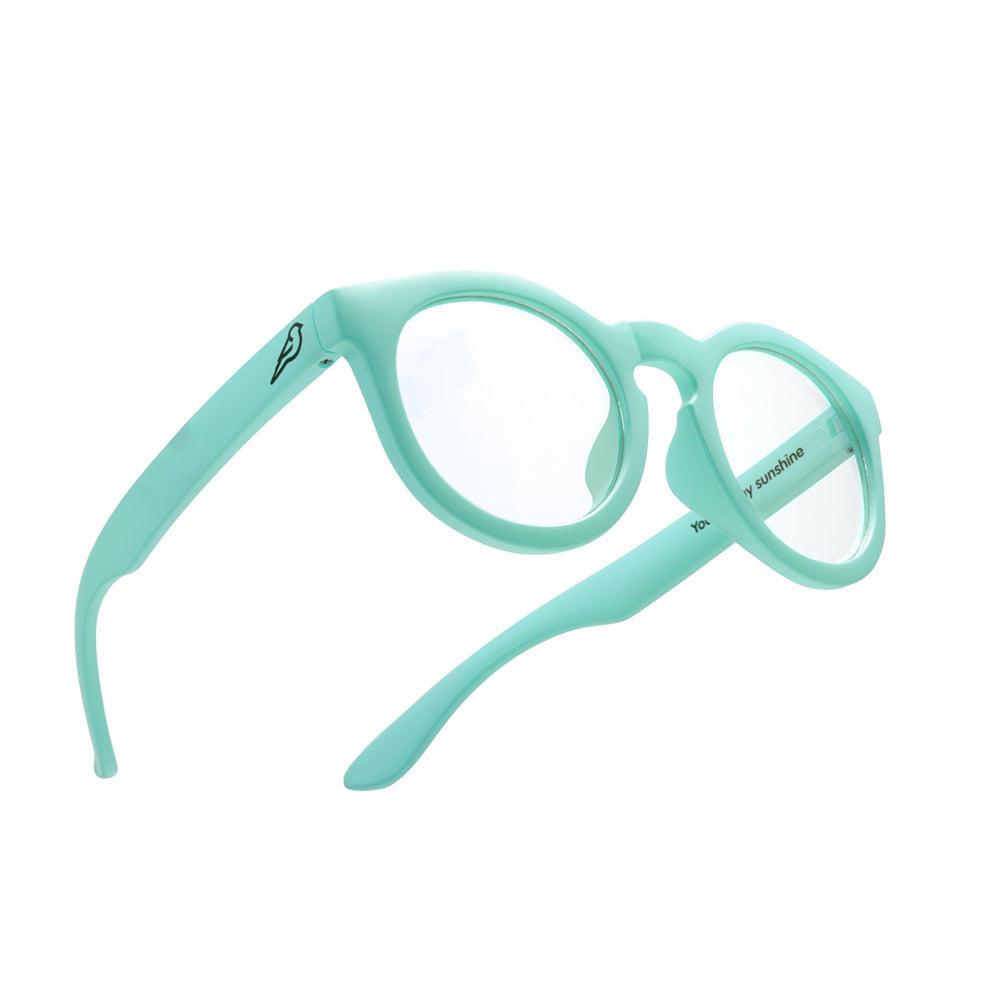 Bird eyewear childrens plant-based blue light screen glasses in the sky blue colour on a white background