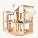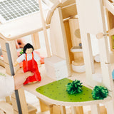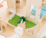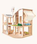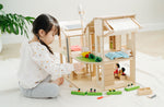 This eco dolls' house is the ultimate in green living. It's energy efficient with a wind turbine and solar power, and also has recycling bins, a green biofacade and a blind to control sunlight and airflow - no air-conditioning here! Children will love to play with this amazing wooden dolls' house and it's a great way to teach them about green living, energy efficiency and recycling.
