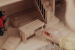 A close up of the furniture inside one of the rooms in the PlanToys Victorian Dolls House.